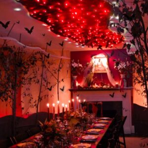 Ideal para: Simular pasillos sangrientos o zonas de “peligro”. Iluminar decoraciones tipo muñecas, manos cortadas, etc. Se pueden añadir efectos con luces intermitentes para dar una toque mas de horror.