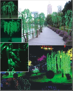 Este árbol de luces es ideal tanto en invierno como en verano. Creando una suave y alegre iluminación interior y exterior en todas las estaciones del año. Las luces de los árboles LED pueden ser depende del modelo a elegir, en blanco cálido, en blanco frío o de colores. Están integradas en las ramas, por lo que no hay ningún cables entre las ramas. El tronco del árbol decorativo led es transparente y se ilumina con base fija.