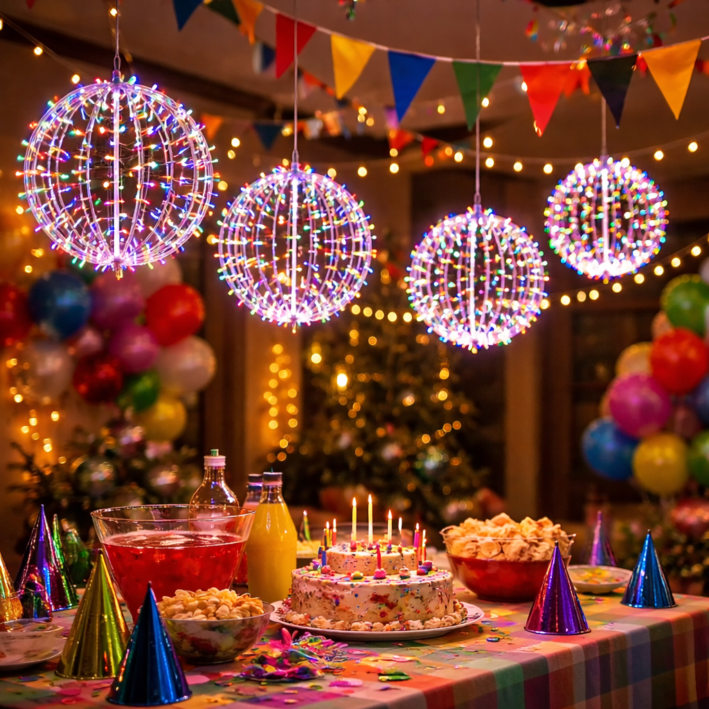 Las bolas LED 3D RGB son perfectas para decorar centros comerciales, fachadas, calles peatonales, plazas, árboles de Navidad y escaparates. Su efecto brillante y colorido transforma cualquier entorno en un espacio festivo y moderno.