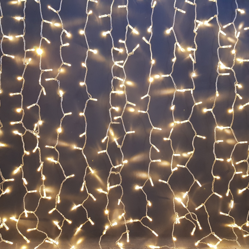 Fabricada con cable blanco de caucho profesional y protección IP65, la cortina es segura y resistente a la lluvia, ideal para instalaciones exteriores y ambientes expuestos a la intemperie. Incluye alimentador de corriente para una instalación directa y sencilla.