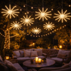 Fabricada en plástico resistente y equipada con cable de goma blanca con enchufe, esta estrella meteorito es muy fácil de instalar. Su diseño colgante permite colocarla en interiores o exteriores de forma rápida y segura. Además, cuenta con protección IP65, lo que la hace ideal para uso exterior profesional incluso bajo lluvia o condiciones adversas.