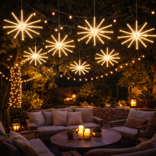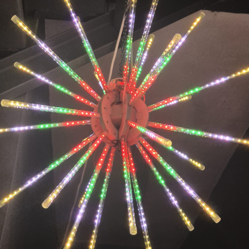 Ilumina tus espacios con la espectacular estrella meteorito 3D RGB colgante LED, una figura luminosa con efecto fuegos artificiales 360° que transforma cualquier ambiente en un espectáculo de luz y color. Su diseño tridimensional combina estética moderna, eficiencia energética y una presencia visual impresionante.