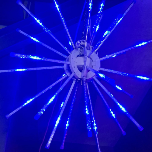 Esta figura luminosa LED incorpora 27 ramas con doble cara (dos lados), cada una con LEDs, creando un efecto 3D realista de fuegos artificiales que aporta dinamismo y profundidad a la iluminación. Está disponible en tres tamaños: 60 cm, 80 cm y 120 cm de diámetro, adaptándose a todo tipo de espacios y proyectos decorativos.