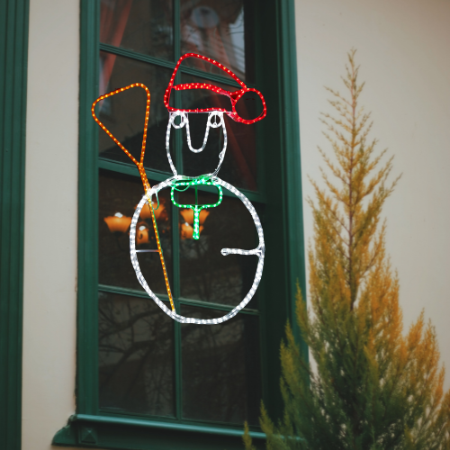 Con unas dimensiones de 1,33 × 0,80 m, el Muñeco de Nieve luminoso LED es perfecto para decorar accesos a comercios, hoteles, restaurantes o el hogar. Su presencia simpática y luminosa convierte cualquier entorno en un lugar acogedor y mágico durante las fiestas. Este modelo incluye cable de alimentación 230V y cuenta con protección IP44, lo que lo hace apto para soportar la intemperie. Su instalación es sencilla y su estructura ligera permite colgarlo fácilmente en paredes o estructuras verticales.