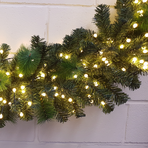 - Cable verde oscuro con 240 LEDs blanco + 240 LEDs blanco cálido – para un efecto luminoso cálido y armonioso.