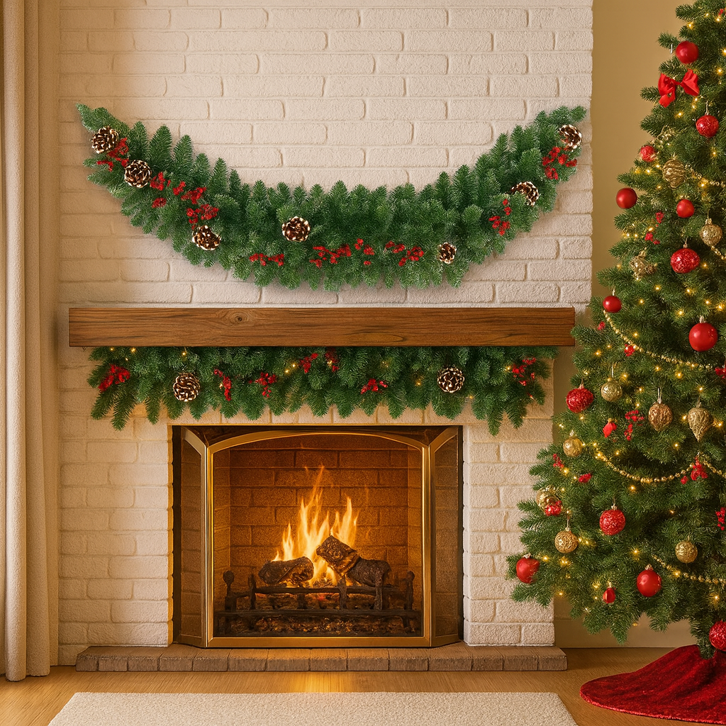 Ideal para quienes desean crear un ambiente navideño memorable, esta guirnalda aporta volumen, color y elegancia a cualquier entorno. Su aspecto natural y su versatilidad permiten integrarla en estilos clásicos, modernos o rústicos, adaptándose a cada tipo de decoración.