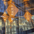 Lámpara LED Colgante Rombo 33x52cm, LED calido, acrílico imitación cristal – Iluminación decorativa para bodas y eventos