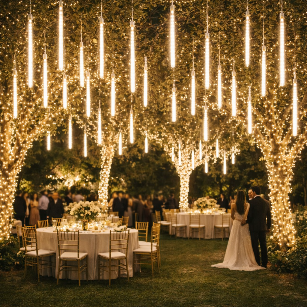 Aplicaciones: Luces Navidad efecto lluvia de meteoritos son perfectos para decoración navideña profesional en calles, árboles, fachadas, balcones, restaurantes, hoteles o eventos especiales. Su efecto visual de meteorito aporta elegancia y movimiento a cualquier entorno, creando una atmósfera navideña inolvidable.