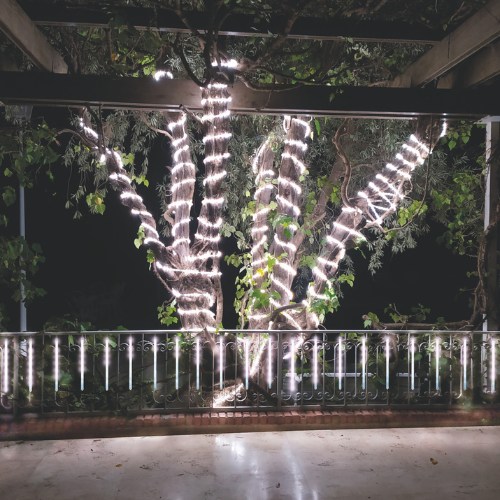 Materiales: Hilo luminoso, Tapiz y Guirnalda de led